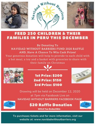 Drawing will be held on December 12, 2020 at 7pm (Central) via Facebook Live on Navidad Without Barriers Facebook page